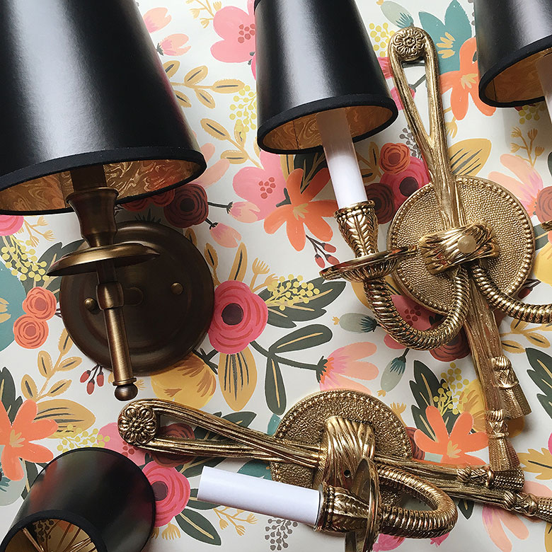 Brass Sconces with Black Chandelier Shades | Making it Lovely