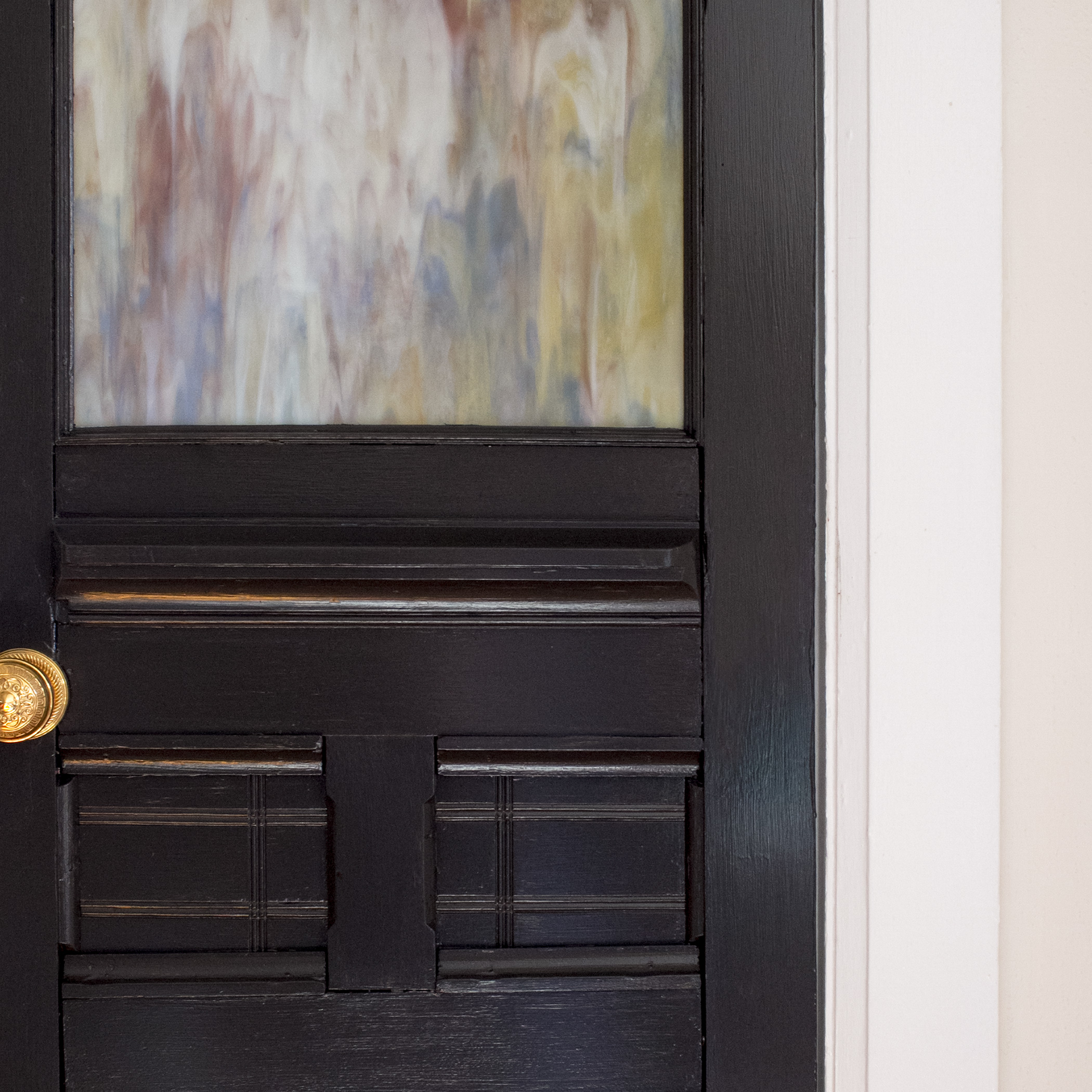 Painted Black Office Door with Brass Knobs | Making it Lovely
