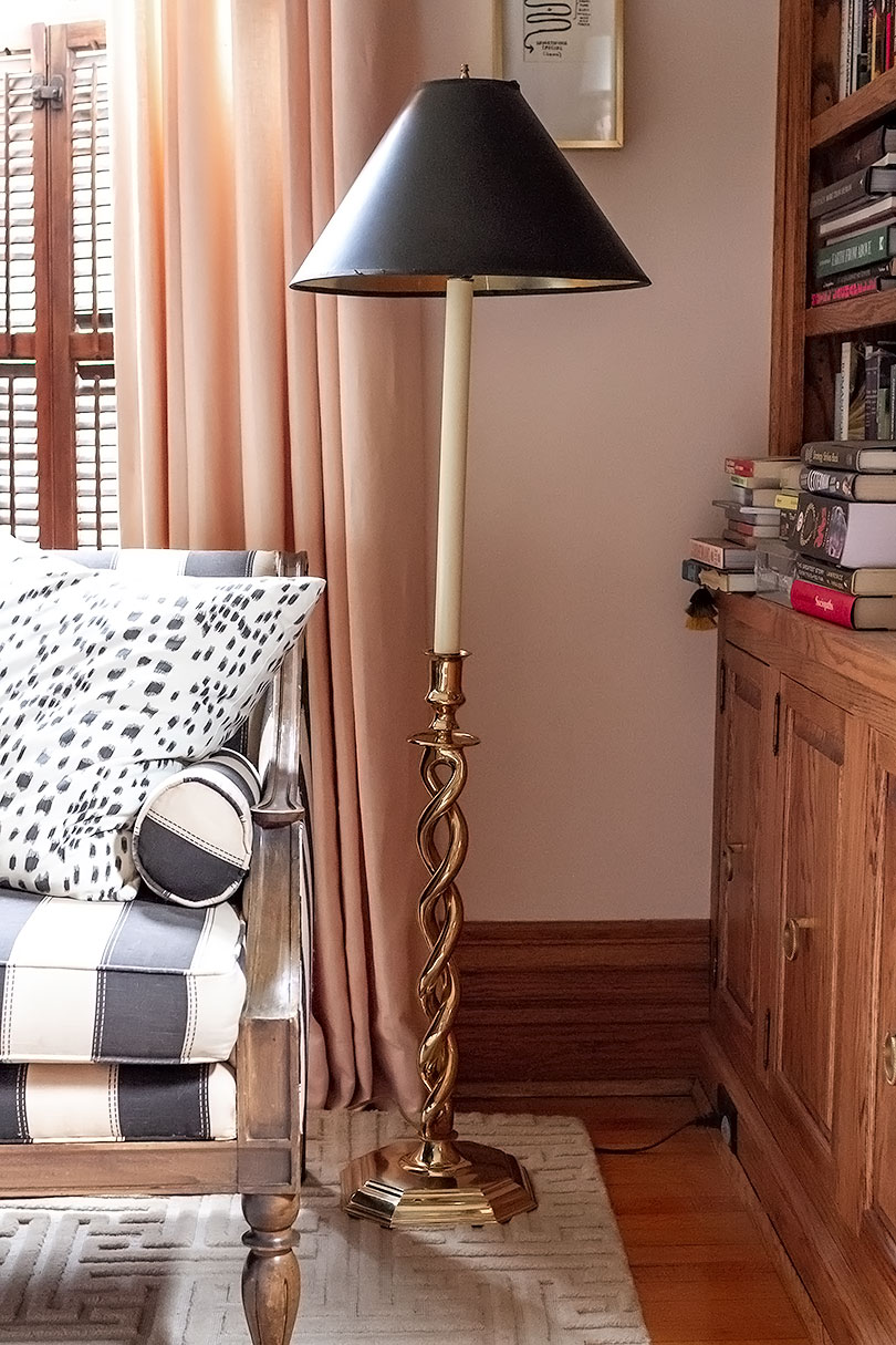 Vintage 1980s Brass Candlestick Floor Lamp with Black Tapered Shade