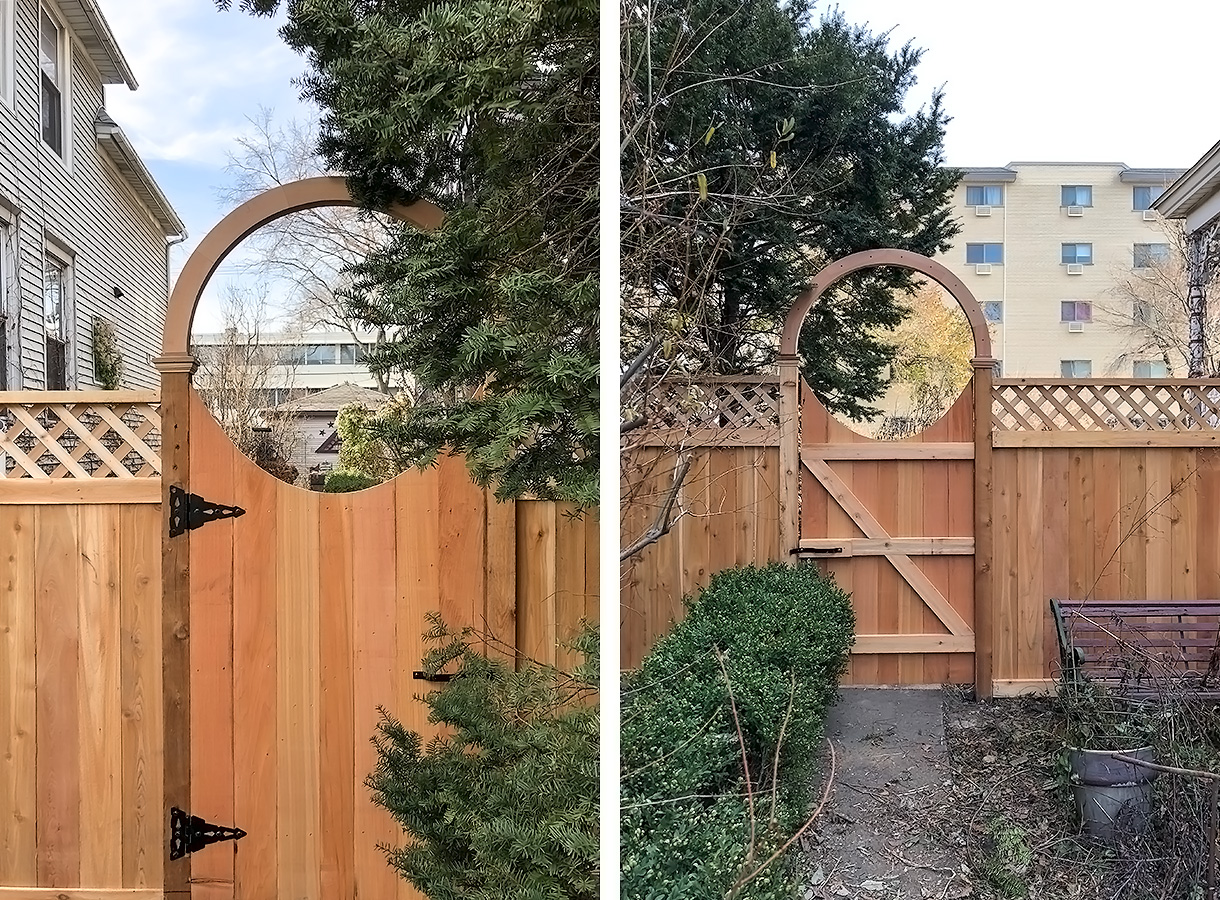 Circle Garden Gate with Lattic-Top Cedar Fence and Arbor