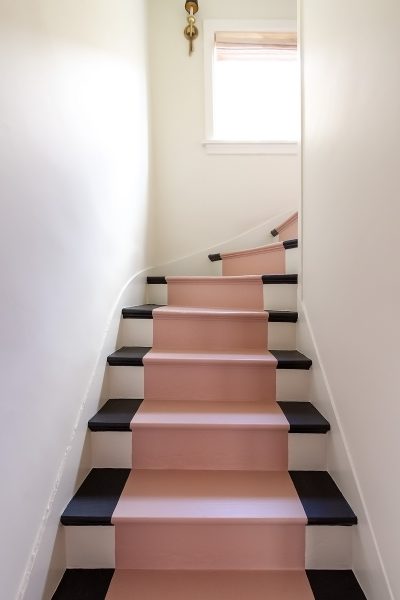 Black and White Painted Stairs with Pink Runner | Making it Lovely
